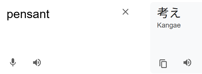 「pensant」はフランス語で「考えている」という意味の「penser(パンセ)」という動詞の現在分詞形です。