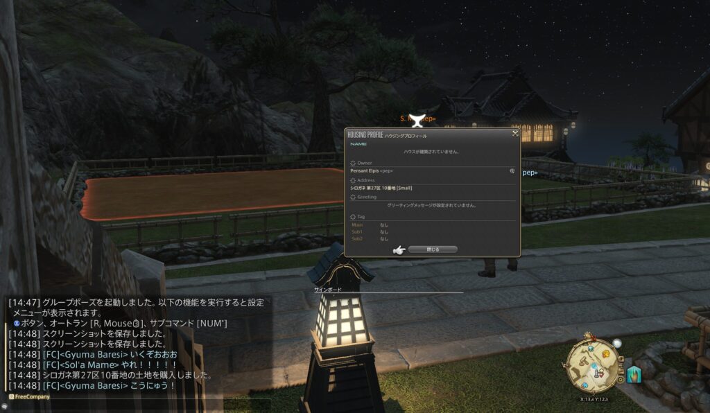 この日僕らは、エオルゼア、ひんがしの国の東州オサード大陸から、さらに海を渡った東の果て、クガネの一角、シロガネの片隅に、小さな土地を買った。
