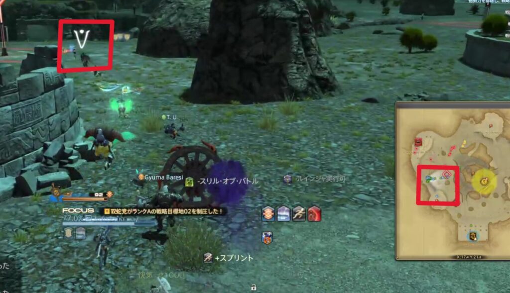マップで味方の青(PT)と緑(アライアンス)の点が一番多く集まっている場所へ全力で向かう、これだけです。