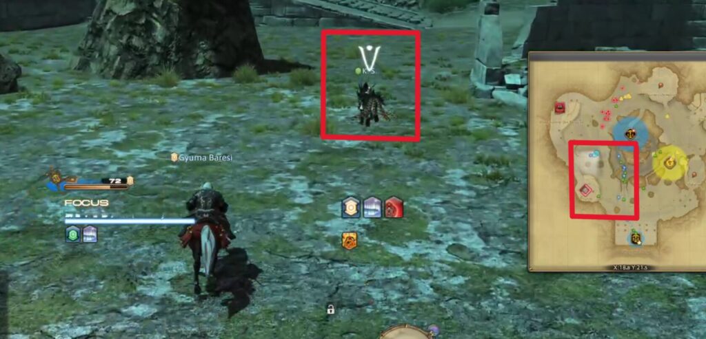 フォーカスした味方を意識しながらマクロで敵をターゲット。